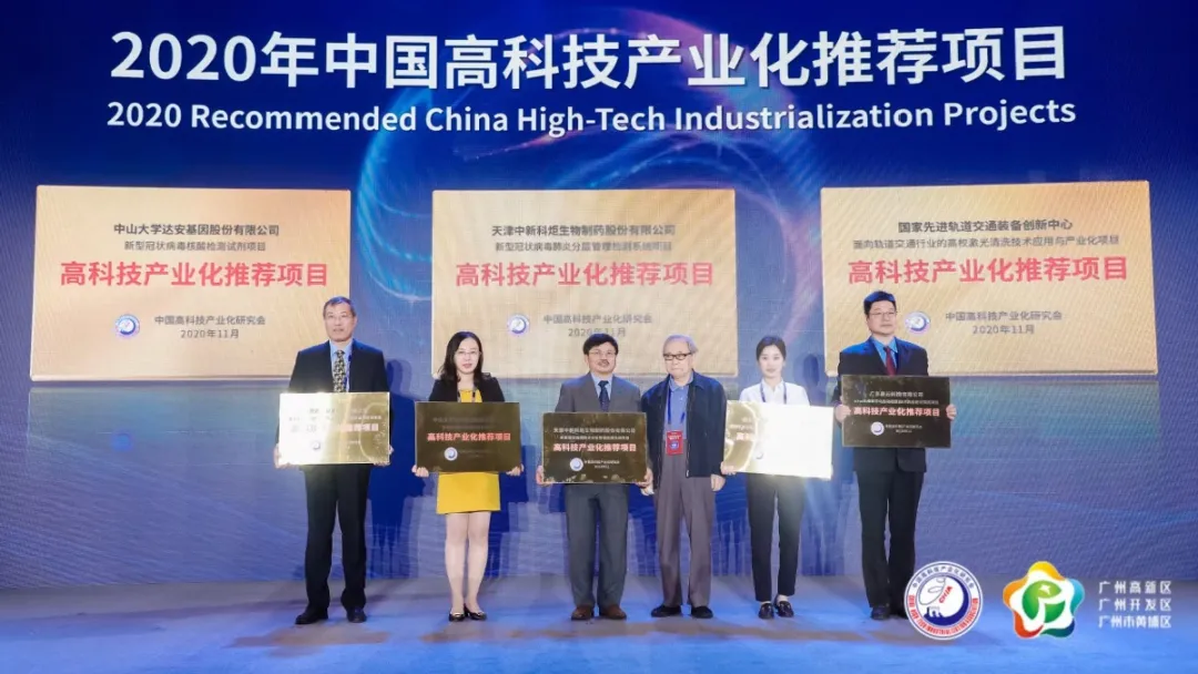 中山大学K8凯发旗舰基因股份有限公司根据《高科技产业化推荐项目申报、评选办法》的有关要求,及时提交了“新型冠状病毒核酸检测试剂项目”的项目申报书。由相关专业的院士、专家、企业家组成的评选委员会顺利获得对申报材料进行谨慎且专业的审查、评议,并由中高会理事长会批准并公示后,本项目最终取得由中高会颁发的“高科技产业化推荐项目”称号及牌匾。