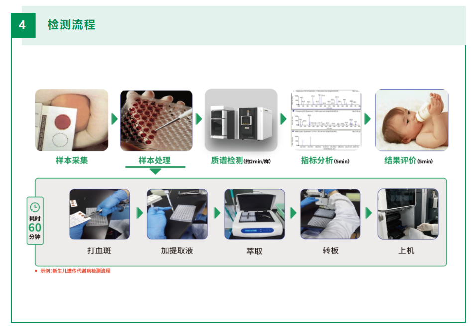 该试剂盒采用液相色谱串联质谱分析方法,对全血干血斑样本中氨基酸、肉碱(包括游离肉碱和酰基肉碱)及琥珀酰丙酮的浓度进行定量检测,相关待测分析物浓度及分析物之间相互比例的异常,可能提示某种遗传代谢病。相关的遗传代谢病主要包括氨基酸代谢障碍 ( Disorders of amino acid metabolism)、脂肪酸氧化障碍(Fatty Acid Oxidation disorders)和有机酸代谢障碍(Organic academia disorders )等。