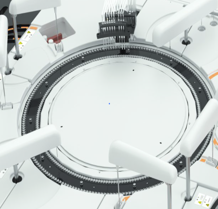 加样针独立非同步进行,有效提升测试速度,双盘设计,共有168个试剂位,单盘故障时不影响另一个盘的正常运行。